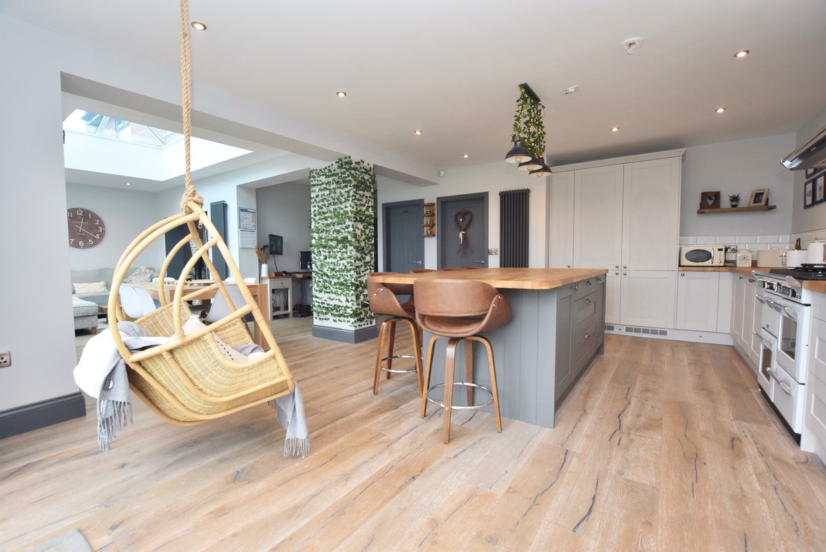 With the kitchen and dining area being at the heart of the design these spaces were moved to the back of the house to take advantage of the views and with a single storey extension at the back with glazed lantern this formed a more cosy snug area for the family to sit down and look out over the garden.